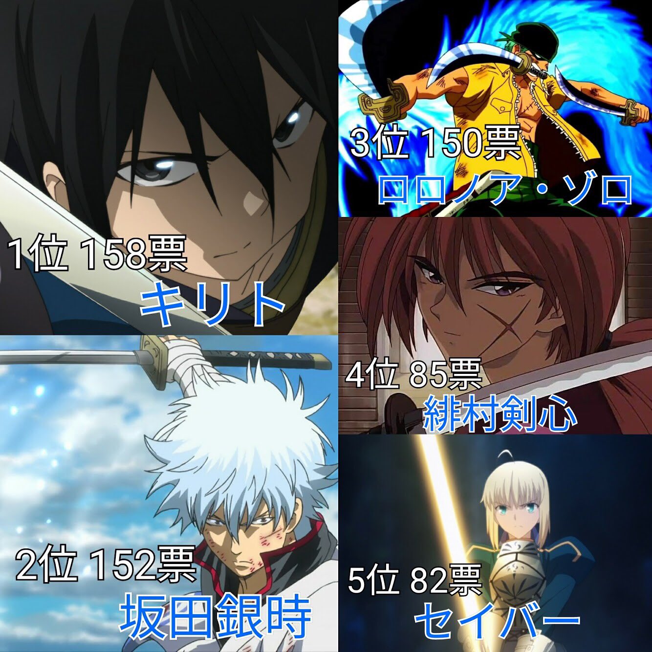 あき Twitterren 刀 剣 が似合うアニメキャラランキング 投票数 21 名前のあがったキャラ 307 あきまとめ